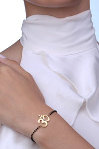 Om single diamond bracelet with traditional black beads in 14KT Yellow Gold are featured from our Everyday Luxury Collection, which is easy to wear and can take you from day to night.