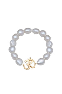 Om single diamond bracelet with white Baroque Pearls in 14KT Yellow Gold are featured from our Everyday Luxury Collection, which is easy to wear and can take you from day to night.