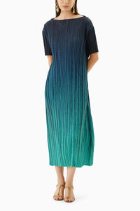 This green pleated ombre midi dress will keep you stylish yet comfortable from day to evening during your holidays. It is cut in silk which is a perfect add to your vacation vault. You can style it with a chic pair of earrings and a belt to elevate your look.