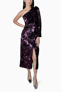 Featuring One shoulder bodycon dress with side slit and puffed shoulder