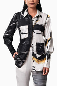 The Onyx Shirt is a striking long-sleeved design that features dramatic cuffs for a bold, fashion-forward look. It is detailed with pearl-embroidered patch pockets on both sides, adding an elegant touch of texture and sophistication to this modern wardrobe essential.