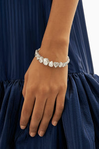 Designed to add more sophisticated style to your look as you adorn this magical bracelet! This is over the top open close bracelet with with big size multi shape white crystals set in silver. Its a delicate hand crafted piece of accessory.