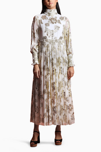 Featuring the Smocked Detail Fit & Flared Dress by Swatee Singh in a timeless White Golden hue. Crafted from luxurious georgette fabric, this dress combines elegance with a touch of opulence, creating a stunning and sophisticated look.