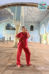 Alipore Pants are handcrafted using striped cotton fabric. It features an elasticated waist, side pockets, and has a relaxed fit. It pairs well with our Alipore shirt.