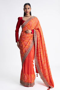 Orange Bandhani Silk Zardozi Embroidery Saree