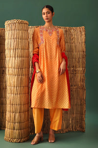 Color- Kurta and Pants - Orange; Dupatta - Red