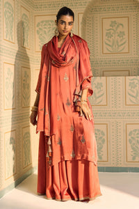 Featuring Orange Chavi Dupatta by Sarang Kaur from Seerat Collection. Crafted from satin georgette, showcases exquisite hand embroidery. Its vibrant orange color and detailed embellishments add a sophisticated touch, making it a perfect complement to any ensemble.