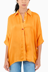 Featuring Orange Moondust Shirt by URAIB from The Forest Affair Collection. This whimsical embellished classic collar shirt in silk showcases collar detailing, and a concealed button placket.