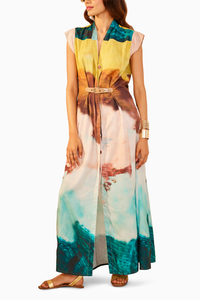 Featuring Orchid Maxi Dress from Sttavoss's Everbloom Collection. Embrace summer vibes with this stunning shirt dress adorned in a vibrant palette. Complete with a stitched-on buckle for adjustable sizing, crafted from cotton rayon slub for a comfortable fit.