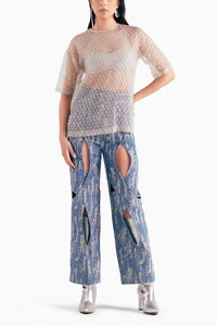 Organza Bubble Wrap T-Shirt With Denim Fray Pants