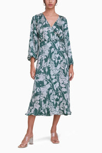 Featuring a midi length, luxurious silky fabric, and striking print, the Shanghai Dress celebrates effortless glamour. This wrap-style dress creates a flattering silhouette, with its full sleeve and easy fit, making it a perfect choice for any special occasion.
