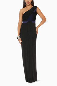 Featuring Orivyn Blue Gown by Linetribe, a one-shoulder gown with elegant drape detailing and micro all-over embellished fabric. This sophisticated design blends graceful silhouettes with intricate artistry, creating a stunning and refined look perfect for special occasions.