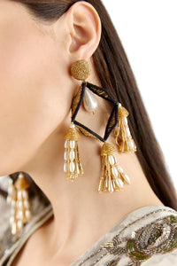 These delicate Orvieto Archway earrings are set in 22kt gold plating. The jewels elaborate the celebration of craftsmanship with intricacy. These earrings feature a dramatic archway with strings of pearls.