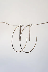Elegant oversized brass hoops accented with delicate bar drops. A modern statement piece that adds effortless sophistication to any look.