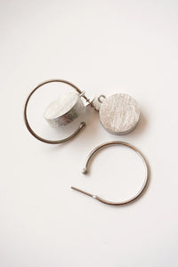 Minimal brass hoops featuring softly textured drop accents. A refined, modern design perfect for effortless everyday styling.