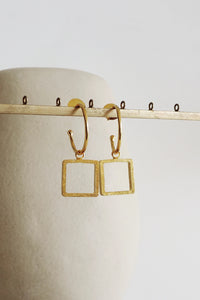 Minimal brass drop earrings featuring open square frames in a warm gold finish. Clean-lined and lightweight, they add a modern geometric touch with effortless elegance for everyday or evening wear.