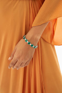 Wear this gorgeous accessory to amplify your formal style or add a hint of grace to your casual style with this stunning bangle made with oval shape green crystals paired with smaller round crystals is just outstanding. Available in different sizes, its a fabulous accessory.