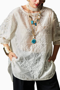 Elevate your style with our oversized embroidered shirt, featuring intricate detailing for a touch of artistry. Crafted from soft, breathable fabric, this relaxed-fit shirt is perfect for layering or wearing solo. Style it effortlessly with jeans or skirts for a chic look