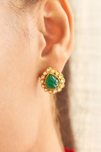 Material: 22 Karat gold-plated, atleast 4-6x thicker than industry standard Recycled brass / hypoallergenic / 100% skin-safe (tested) Color: Gold, Green & Silver Dimensions: 2 X 1.7 cm Product Code: SVEAULE2064
