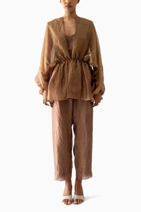 Fabric- Organza Tissue, Chanderi Tissue Color- Bronze Fit- Relaxed Components- 3 Product Code- SVEESHAEA1511