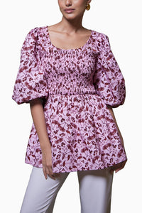 The Palermo top features a puff sleeve and is elasticed across the bust and waistline, for a comfortable fitted look. The top is slightly longer in length and has a scoop neckline. It's made from 100% sustainable cotton.