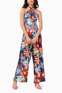Not for the faint hearted. The Paloma Jumpsuit features a halter neck detail and wide legged pants. Accompanied with a fabric belt, the jumpsuit features smocking detail at the back to ensure that perfect fit. Print placement may vary from piece to piece.
