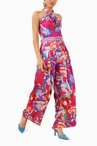 Not for the faint hearted. The Paloma Jumpsuit features a halter neck detail and wide legged pants. Accompanied with a fabric belt, the jumpsuit features smocking detail at the back to ensure that perfect fit. Print placement may vary from piece to piece.
