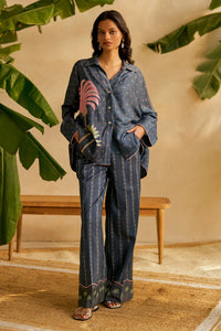 The Pampas Palms Co-ord Set is the epitome of effortless luxury, a refined fusion of nature’s beauty and sophisticated design. Draped in an exquisite palm motif, this set evokes the tranquil allure of sun-drenched landscapes and exotic getaways. The top is tailored with meticulous precision, offering a flattering silhouette that moves gracefully with every step, while the high-waisted trousers flow elegantly, capturing the perfect balance of structure and fluidity. This Co-ord Set envelops you in an aura of quiet sophistication, making it a true statement of luxury and effortless grace.