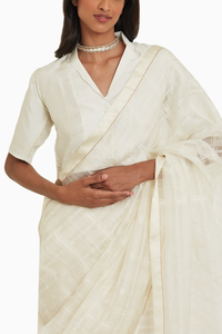 The Panache Ivory Blouse is inspired by a collared shirt. It is crafted in the softest handwoven mulberry silk and features tone-on-tone fabric buttons for a seamless look.