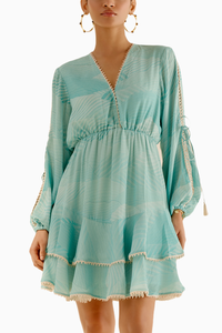 Featuring Dune print layered dress with lace detailing along with the slit on the sleeves with the tie knot.