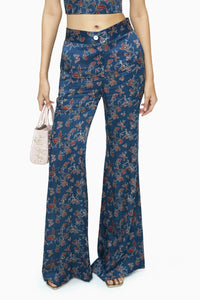 Full-length flared pants in modal featuring the Flutter garden print. Designed with a smooth mid-rise waistband and a soft flare through the leg, they create an elongated, flattering silhouette — elevated yet easy.