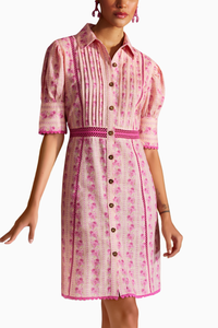 Featuring Paradiso Pink Dress by Sttavoss. The Paradiso dress in our signature print is intricately crafted with lace detailing at the waist and gorgeous buttons at the placket. Made in a natural cotton blend, this piece is surely timeless occasion wear.