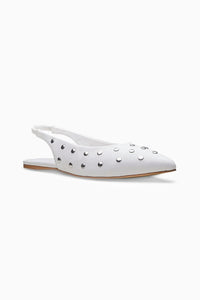 Step into understated elegance with the Paris White Ballerinas Flats. These pointed-toe pumps feature refined nickel stud details for just the right touch of edge. Crafted with a cushioned sole that supports your arch, they offer exceptional comfort—even without a heel. Sleek, versatile, and effortlessly stylish, these flats are made for days that demand both polish and ease.