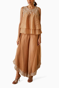 Elevate your elegance with our Blush Pink Parsi Gaara Layered Top paired with Organza Palazzos. Crafted from delicate Organza, it offers a comfortable fit and timeless sophistication.