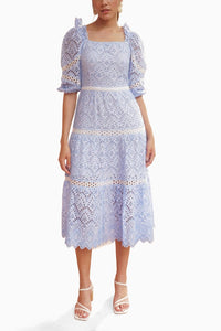Pastel-Hue Intricate Detailed Broderie Anglaise  Dress