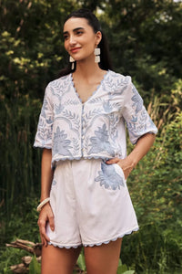 The Pastel Hue Palmera Embroidered Co-ord Set features a unique palm embroidery in soft pastel tones. Perfect for sundowners or summer brunches this set from The Golden Haze Collection brings effortless elegance and relaxed charm to your look.