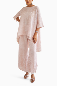 Elevate your style with our Pastel Pink Crushed Bandhani Coord Set. Crafted from luxurious Raidaana Crushed Silk Bandhani, it offers a comfortable fit and timeless elegance in a delicate pastel pink hue.