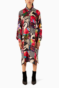 The Patchwork Dress crafted from our stunning Vegan Silk fabrication, trans-seasonal, is a statement piece. The dress, made from the scrapes of fabrics of our Wildflower Collection, has been painstaking patched together. With a placket and cuff and a straight fit, it is chic. Featuring little gathers and a boxy fit, this dress can be styled in different ways. Wear it with heels for an elegant look.Note: As this dress is made from patchwork, there might be slight print placement variation than the image.