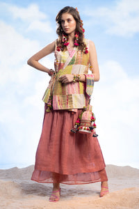 Composition- Top: Cotton, Skirt: Linen Color- Top: Multi, Skirt: Vintage Pink Components- 2 Product Code- SVECAPIPAL16&PAL17