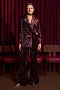 Featuring Paula Co-ord by San Seh, this power-driven look pairs a velvet blazer with bootcut pants, offering a sleek silhouette elevated by plush texture.