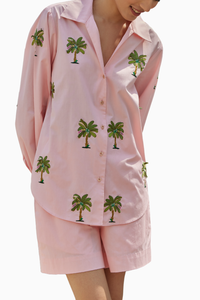 A peachy summer staple but with a tree u haven’t seen before. Detail embroidery and so cute and stylish. You will love to wear this shirt and short set for your lunches, dates for sure.