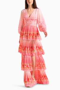 The Peach Bud and Bloom long layered dress is a dreamy and enchanting creation. The delicate peach color evokes a sense of serenity and romance, reminiscent of budding flowers in a tranquil garden. With its long, flowing layers, this dress exudes a graceful and ethereal charm. It's the perfect choice for a whimsical outdoor event, a summer soirée, or a special occasion where you want to capture the essence of blooming beauty and elegance. This dress is a delightful embodiment of nature's grace and is sure to make you feel like a blossoming vision.