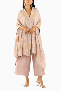 Featuring Peach Cape Tunic by Twenty Nine India from Nisha Collection. Adorning intricate tie-dye patterns and a contemporary asymmetrical cape, this tunic combines traditional elegance with modern flair, perfect for making a stylish statement at any occasion.