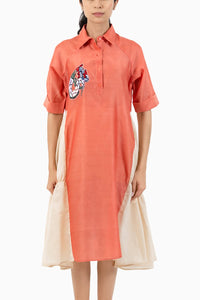 Featuring Peach-Ecru Mellisa Dress by URAIB from The Forest Affair Collection. Crafted from sheer chanderi fabric, this dress exudes elegance in the serene shades of Peach- Ercu, offering both style and comfort.