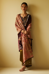 Featuring Peach Meera Tissue Dupatta by Sarang Kaur by Meera Collection. Crafted by delicate tissue silk, this dupatta in a soft peach hue adds a touch of elegance to any outfit. Perfect for enhancing your ensemble with grace, ideal for both casual and formal occasions.