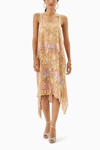 Where comfort meets chic, and everything is glistening. This dress is easy to style and will compliment any accessory you pair with it. Crafted in peach jacquard fabric it details thin straps and loose drape details at the back giving it feminine silhouette.