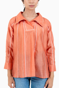 Featuring Peach Sirius Shirt by URAIB from The Forest Affair Collection. Tailored from Chanderi fabric, this shirt boasts a bold and stylish look with its captivating Peach Hue, ensuring a distinctive wardrobe essential.