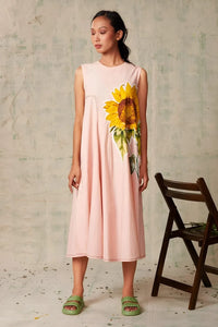 The Peach Sunflower Appliqué Dress is a delightful and charming garment that combines the softness of peach with the vibrancy of a sunflower. Adorned with delicate sunflower appliqué, this dress adds a touch of whimsy and elegance to any wardrobe. The peach hue lends a soft and romantic feel, while the sunflower embellishment creates a cheerful and playful vibe. Perfect for summer weddings, garden parties, or any special occasion, this dress is sure to turn heads and make a statement.