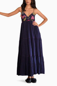 An essential summer staple, this tiered maxi dress is ideal for summer outings and laid-back evenings. Crafted from delicate chanderi silk and cut in a flattering silhouette, this dress features a fitted bust & overlap V-neckline, handcrafted multicolored straps and a smocked back. The bead handwork embroidery on the bodice makes this dress more versatile.