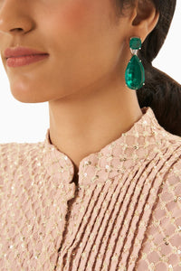 These are absolutely beautiful pair of exotic round and hanging earrings in pear shape. Made with an intricate combination of green CZ with white enamel around the bottom stone set in 92.5 sterling silver crystals. Each green crystal radiates a beautiful color.